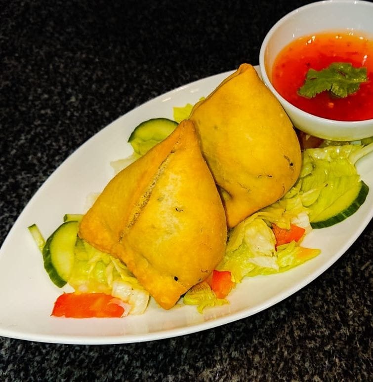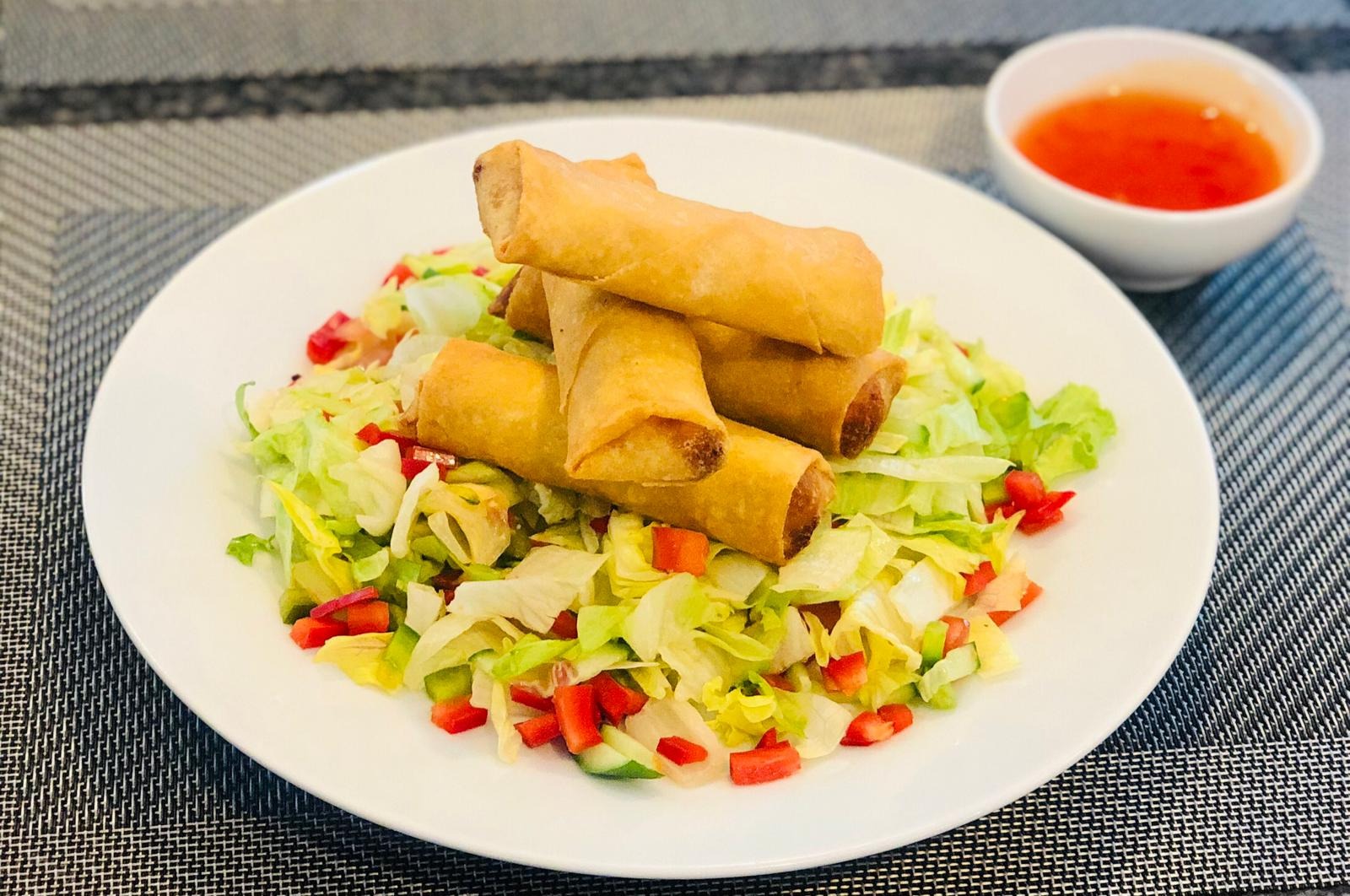 (wegertariańskie sajgonki podawana z sałatką i sosom czosnkowym)