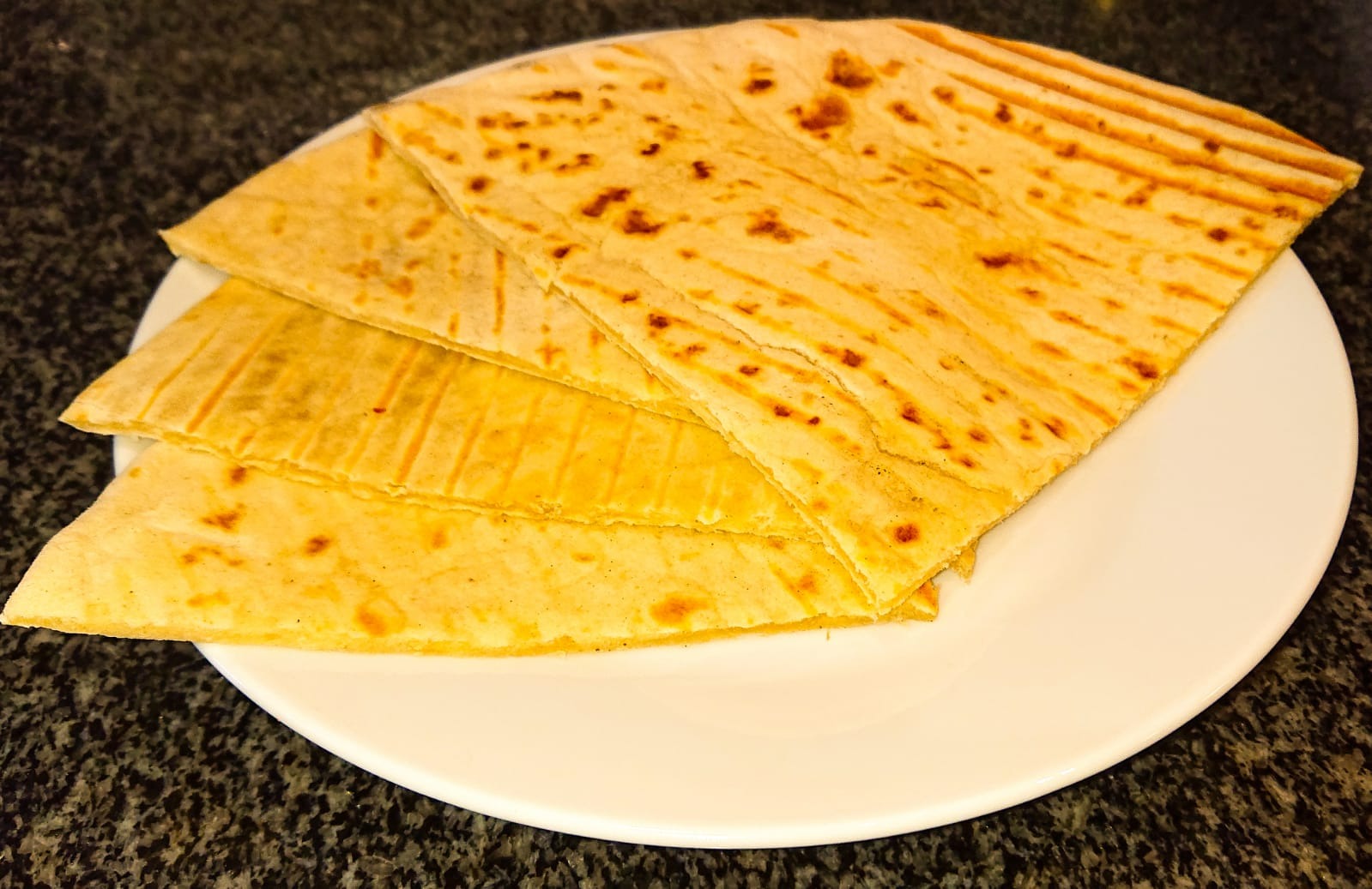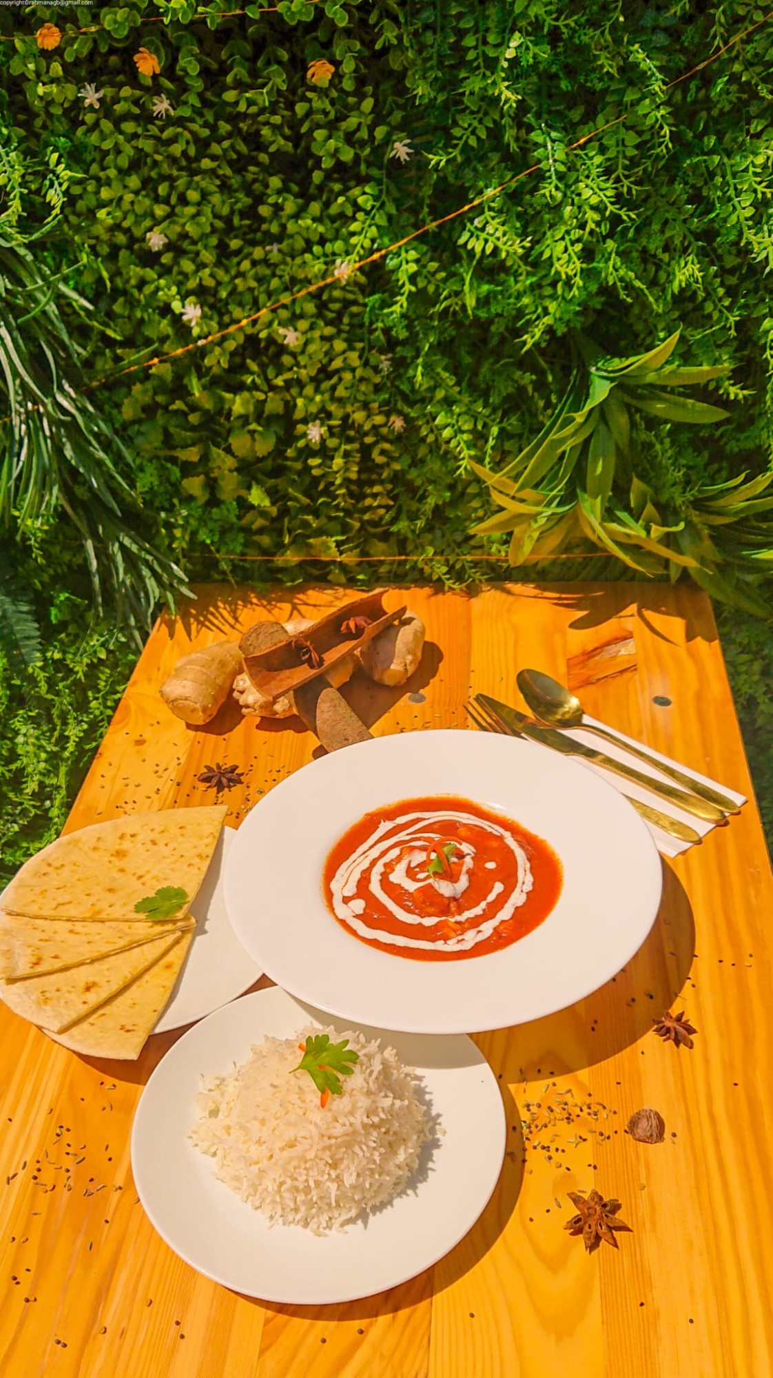 Ciecierzyca, sos masala z siekanej cebuli i pomidorów, podawane z domowym maślanym Roti -