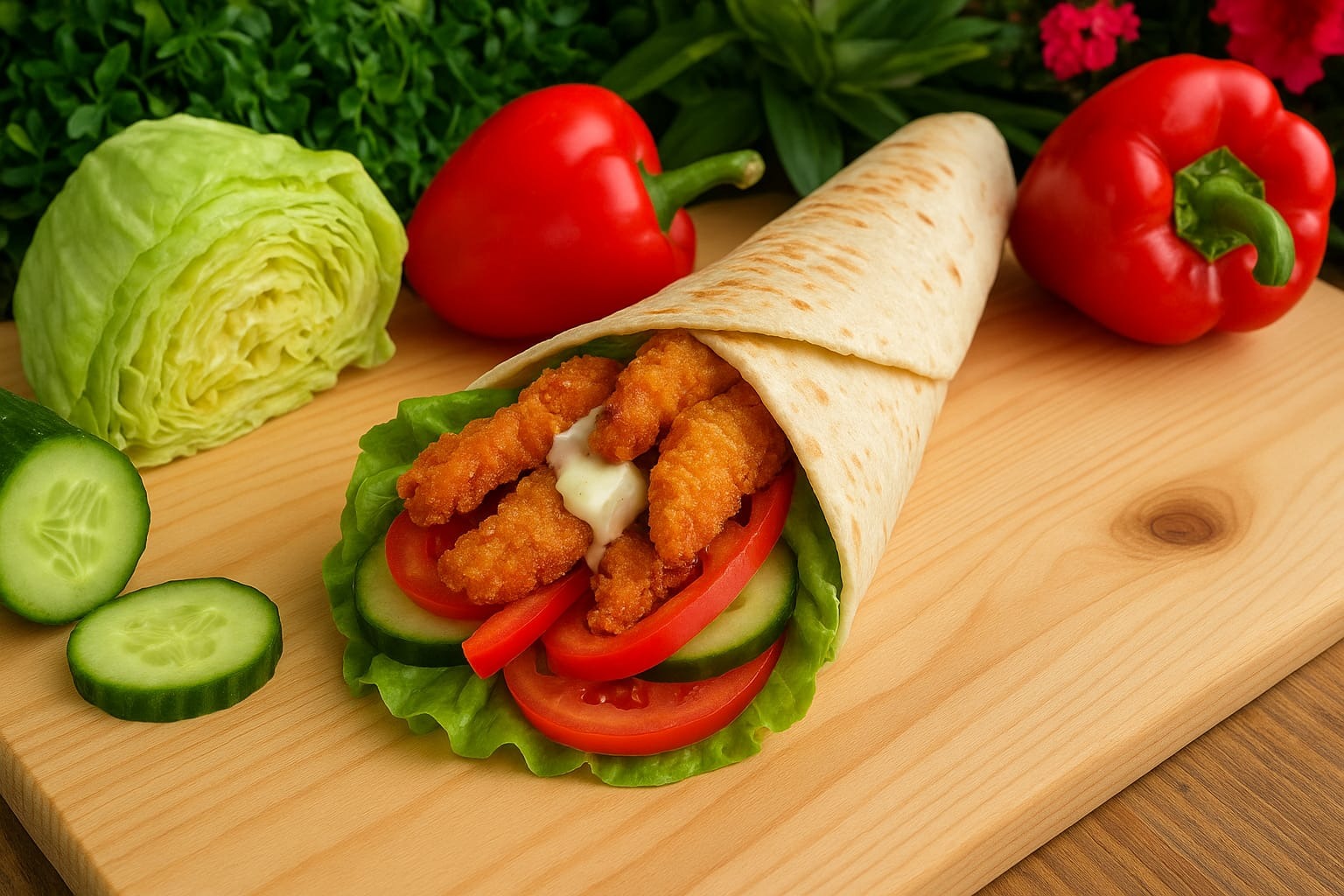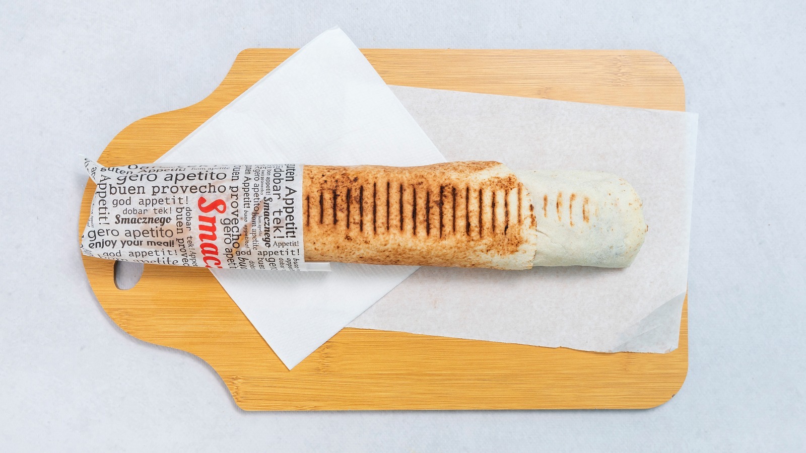 KURCZAK/ WOŁOWINA/MIESZANY, Sałata lodowa, ogórek, pomidor, papryka, ser, sos (specjalny ekstremalnie ostry sos!)