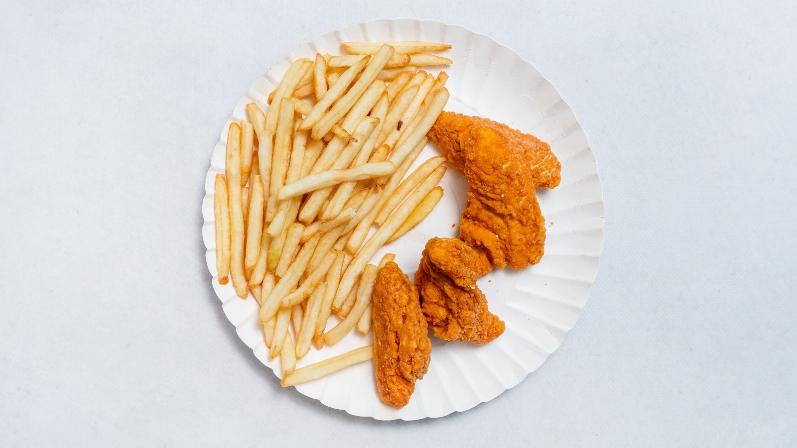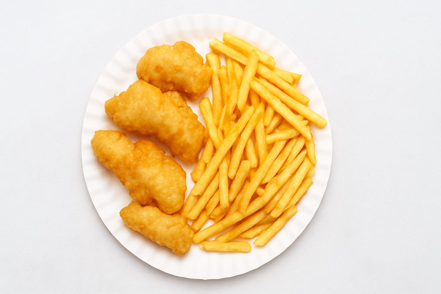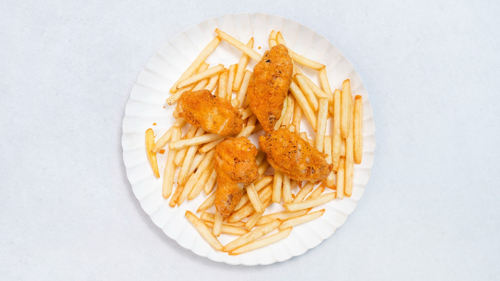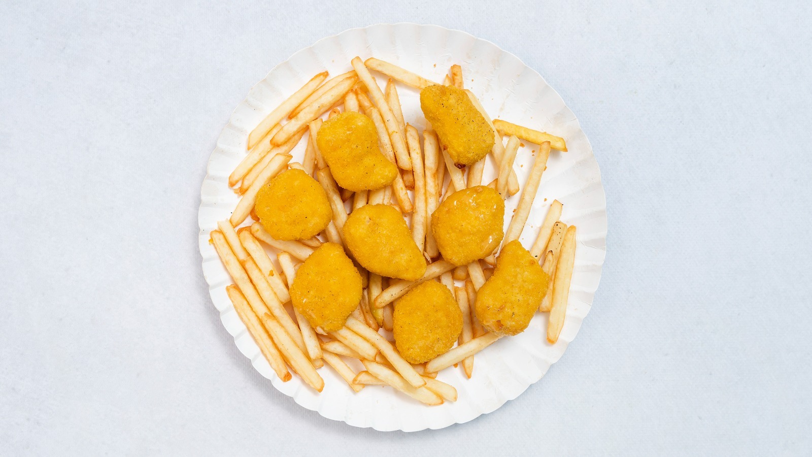 Chill nuggetsy cheddar-habanero z frytkami i słodkim sosem chili