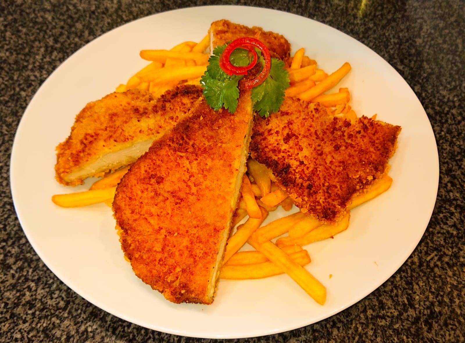 Chrupiący kurczak, mix saład, domowy dressing, sweet chilli sauce, sezam